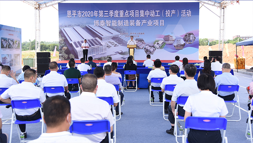 江门市副市长蔡德威,恩平市委副书记、市长刘兵,恩平市领导关凯宁、岑安林等参加yabo鸭脖智能制造装备产业项目动工仪式。