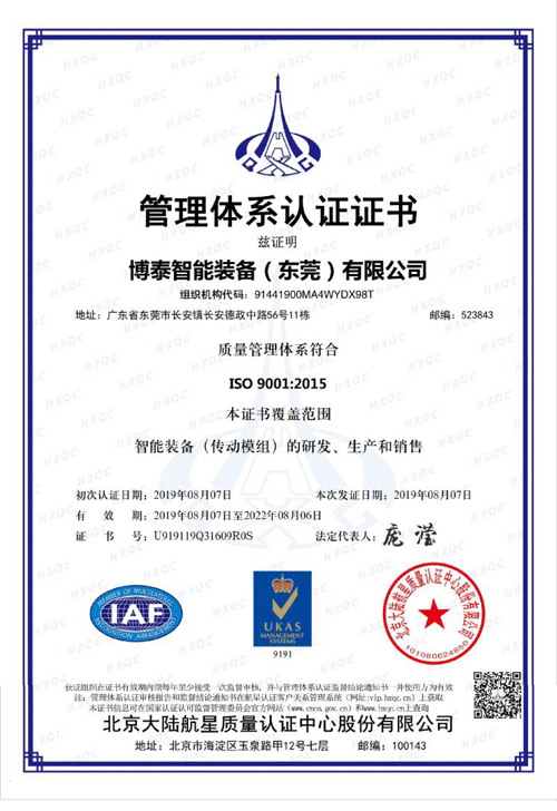 热烈祝贺yabo鸭脖智能通过ISO9001质量管理体系认证